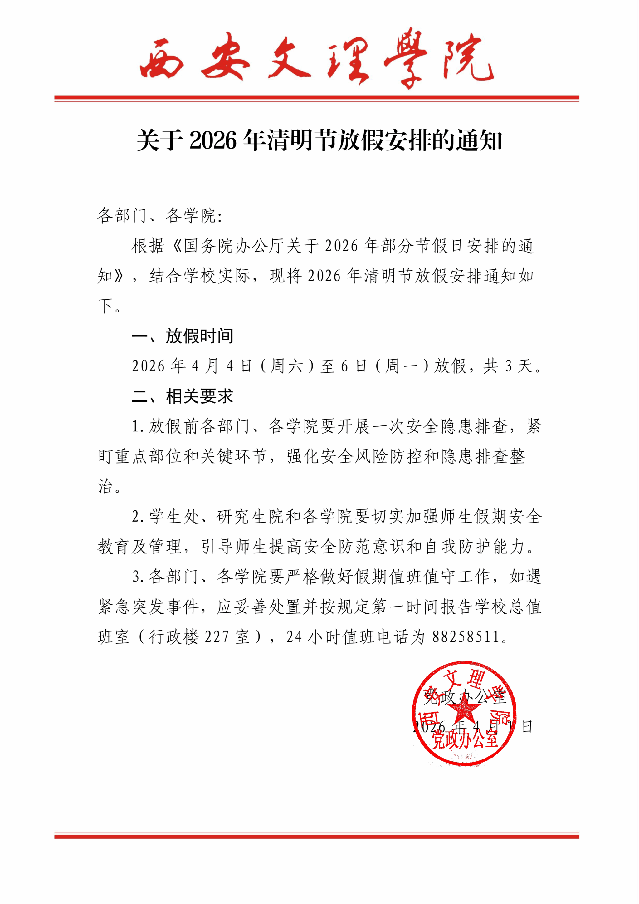 关于2026年清明节放假安排通知