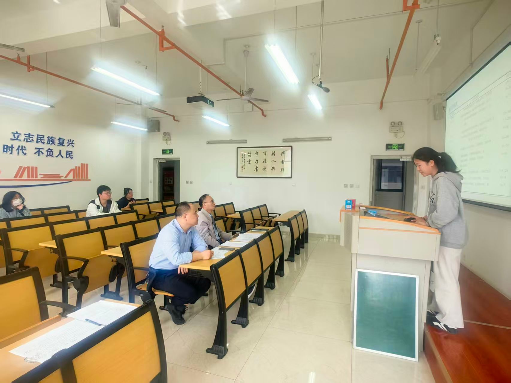 各项目组从研究过程、创新点、取得成果、经费使用等方面进行汇报。经过项目周期内工作的实施,产出了一批较高质量成果,且部分成果已转化应用于学科竞赛或创业实践。